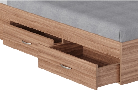 Эта кровать имеет увеличенную стенку у изголовья, наполненную эластичный пенополиуретаном для максимального комфорта.
