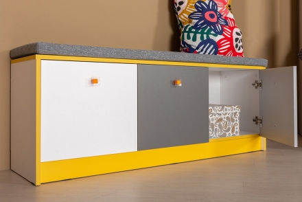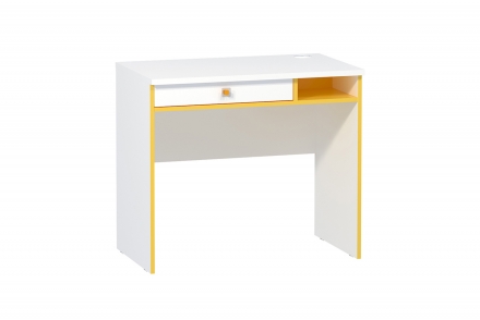 Универсальные цвета актуальны как для мальчика, так и для девочки. Стол достаточно просторный для подготовки домашних заданий и размещения компьютера, для этого в столе предусмотрен специальный разъем под провода. Система хранения включает в себя открытую нишу и выдвижной ящик под столешницей.