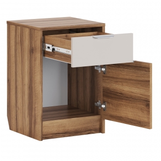 Особенности:эко-дизайн,древесный декор,хорошая вместимость модулей,универсальная сборка некоторых элементов,столы с утолщенными столешницами – 22 мм и увеличенной шириной – 1350 мм,ящики с телескопическими направляющими полного выдвижения.