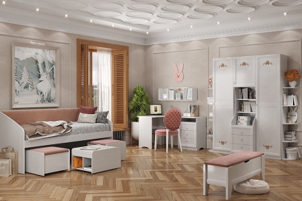 Особенности: классический стиль,экологичные материалы,скругленные углы для большей безопасности,доводчики, которые гарантируют отсутствие шума и повреждений на дверях,шариковая система полного и бесшумного выдвижения на ящиках,универсальная сборка некоторых модулей.