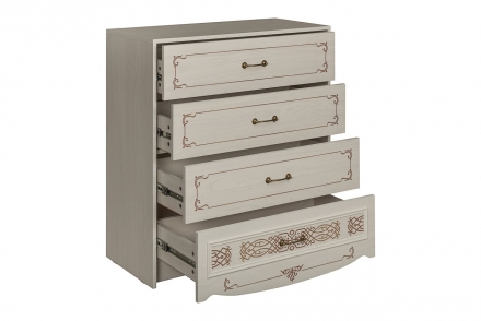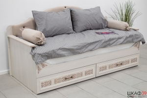 Детская модульная система "Флоренция" привлекает внимание классической геометрией и узорчатой фотопечатью. Фасады дополнительно украшены декоративным профилем. Картину дополняют изящные металлические ручки в цвете "старое золото" и мягкие элементы дивана-кровати, подушки-конфетки.