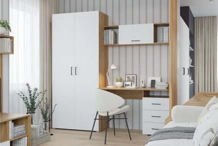 Шкаф 2-х створчатый "Лайт 900".Цвет: дуб золотой/белый матовый.Материал: лдсп.Ширина 900 мм,Высота 2052 мм,Глубина 480 мм.