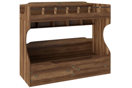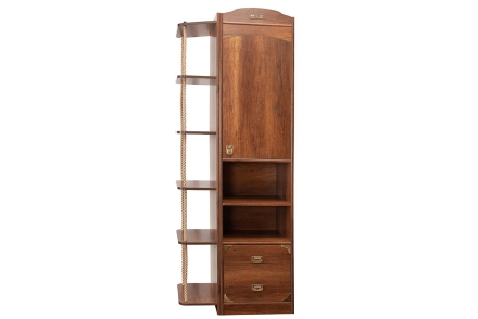 В любой детской должны быть три основные зоны: зона для учебы, сна и игр. И в предлагаемой модели есть все для того, чтобы Вы легко смогли создать для самого главного члена семьи замечательную и функциональную комнату! Детская в морском стиле никогда не выйдет из моды и не надоест Вашему чаду. Она хороша тем, что подходит для оформления комнаты как подростков, так и детей. Молодежная комната в морской тематике – лучший подарок ребенку, который мечтает о путешествиях и зачитывается книжками о пиратах. Используемая текстура натурального дерева «Дуб Каньон» напоминает о кораблях эпохи великих географических открытий. В такой детской комнате ребенок будет ощущать не только комфорт и удобство, но и чувствовать себя в роли капитана корабля, от которого зависят все великие открытия современности!