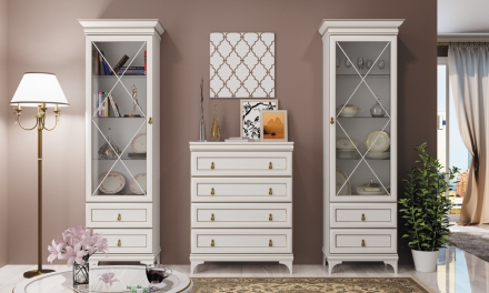 Мебель для гостиной Агата, выполненная в светлых тоннах, понравится тем, кто ценит классику, элегантность, утонченные детали и высокое качество исполнения.