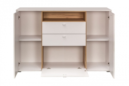 Полка гостиная Бэль. Цвет - белый премиум. Размер (ШхГхВ) 120х20х24 см. Широкая, открытая полка поможет расставить акценты и разнообразить цветовую гамму гостиной калейдоскопом размещённого декора.