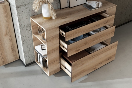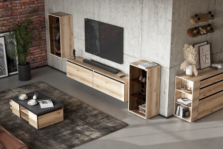 Мебель Берген для гостиной выполнена из надежных экологически-чистых материалов природного происхождения. В производстве используется ЛДСП европейского качества, которая не подвержена сколам, легко переносит повторные сборки и служит не один год даже при интенсивной эксплуатации. Коллекция Берген - отличный вариант для обустройства пространства гостиной в модном стиле лофт.