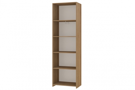 Внизу, за глухой частью дверей, найдется место для более ценных предметов. За распашной дверью шкафа находится выдвижная штанга для вешалок-плечиков с верхней одеждой, красивыми платьями и деловыми костюмами. На полках можно хранить различную одежду и белья, аксессуары и коробки с обувью.