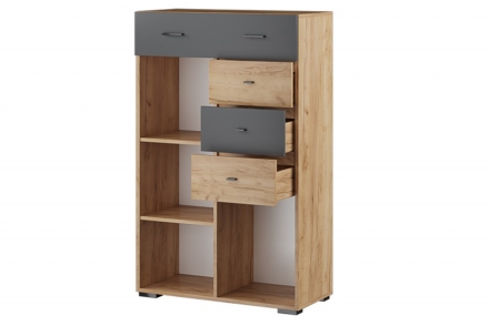 Закрытый шкаф-пенал с 2-мя стеклянными полками, ящиком и нишей за дверцей.