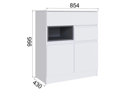 Отсутствие лицевой фурнитуры. Царги кровати не до пола, основание кровати-настил из ДСП 2С идет в комплекте с корпусом. Кровать можно дополнить мягкой накладкой, из ткани Велюр Серого цвета. Модуль МСП-21 может быть выполнен в 2 цветах: Белый с тиснением «Древесные поры» или Графит Серый. В комоде МСК-21 ниша выполняется в цвете Графит Серый. Спальню можно собрать в одном стиле с гостиной
