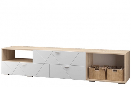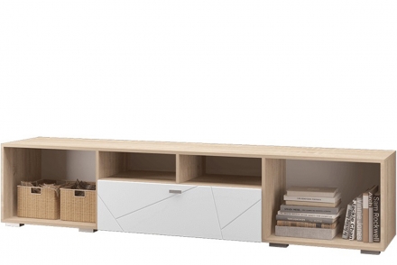 Напольные тумбы с ящиками можно использовать не только для хранения не предназначенных для лишних глаз вещей, но и как подставку под ТВ и другую технику.