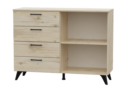 Коллекция Sofia создана с учетом тенденций на мебельном рынке и запросов самых требовательных покупателей. Мебель выполнена из ЛДСП в трендовом декоре "гаскон пайн светлый" с имитацией текстуры натурального дерева. Черная утонченная лицевая фурнитура добавляет модулям стиля, а Вам - удобства от ежедневного использования. Сделав выбор в пользу Sofia, Вы окружите себя качественной и по-настоящему привлекательной мебелью. Комплект для гостиной состоит комбинированного комода, шкафа-витрины, низкого шкафа с полками, тумбы под телеаппаратуру, открытой навесной полки и журнального стола с необычной конструкцией.