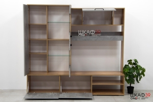 Гостиная Трамп - это стильное решение для ценителей качественной, функциональной и, без сомнения, трендовой мебели для дома. Всего двух модулей, центральной секции и шкафа, хватит, чтобы обустроить гостиную с ТВ-зоной (размер ниши под телевизор - 1086 х 684 х 460 мм) и зону хранения одежды и вещей. Стиль лофт, в котором выполнена мебель, придаст Вашему интерьеру особенный характер. Корпус цвета крафт и фасады в декоре метрополитан грей смотрятся очень оригинально, но при этом солидно. Центральная секция создана, чтобы решать вопрос хранения в малогабаритных квартирах и студиях. Вместительный двухстворчатый шкаф с ассиметричными дверцами придает центральной секции завершенный вид. "Трамп" ЦС-05 отличается возможностью универсальной сборки на правую и левую стороны, наличием стекла с фотопечатью толщиной 4 мм, шариковыми направляющими полного выдвижения и стеклянными полками толщиной 6 мм.