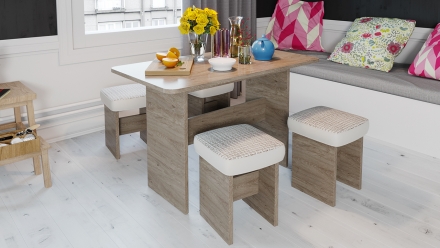 Титул Обеденная группа Дуб сонома/Ткань коричневая/бежевая