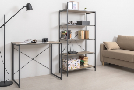 Использование крестовых металлических стяжек вместо задней стенки делает конструкции лёгкими, воздушными и чрезвычайно прочными к боковым нагрузкам.