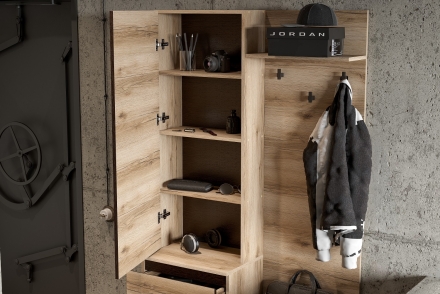Мебель Берген для прихожей выполнена из надежных экологически-чистых материалов природного происхождения. В производстве используется ЛДСП европейского качества, которая не подвержена сколам, легко переносит повторные сборки и служит не один год даже при интенсивной эксплуатации. Коллекция Берген - отличный вариант для обустройства пространства прихожей в модном стиле лофт.