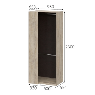 Гардеробная система Этна – это уникальная серия, включающая корпуса, распашные фасады и разнообразное наполнение (ящики, полки, штанги, выкатные брючницы). Вы сможете организовать продуманное хранение одежды и вещей в любом помещении, от прихожей до рабочего кабинета, с учетом его размера и Ваших запросов. Трендовый декор фасадов «софт грей» гармонично дополняет сложный древесный декор корпуса «дуб эндгрей».