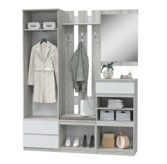 Прихожая Лори - воплощение функциональности и стиля. Мебель понравится любителям современных интерьеров со скандинавскими мотивами. Правильные формы, отсутствие лицевой фурнитуры, приятное сочетание древесного оттенка корпуса с белыми фасадами - все это освежит интерьер и привнесет уюта. Компактный размер и продуманное наполнение модулей позволит обустроить спальню и зону хранения, не загромождая пространство. Это грамотное решение для малогабаритных квартир.