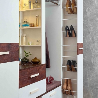 В прихожей Норвуд Белый декор используется в качестве основного цвета. При этом помещение не будет выглядеть просто, так как в дизайне модулей Норвуд используются контрастные горизонтальные поверхности и брашированные деревянные вставки в декоре Орех Шоколадный. Выразительное сочетание актуальных декоров не останется незамеченным и привнесет теплоту в атмосферу вашего дома.