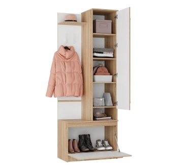 прихожая выполнена из высококачественной ЛДСП контрастных цветов сонома и белый.