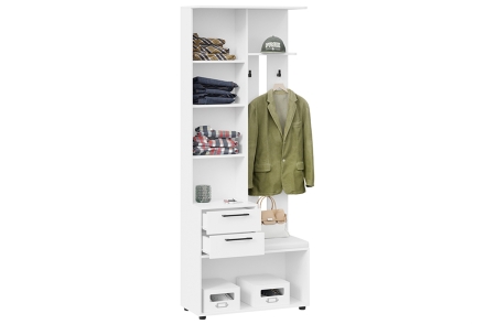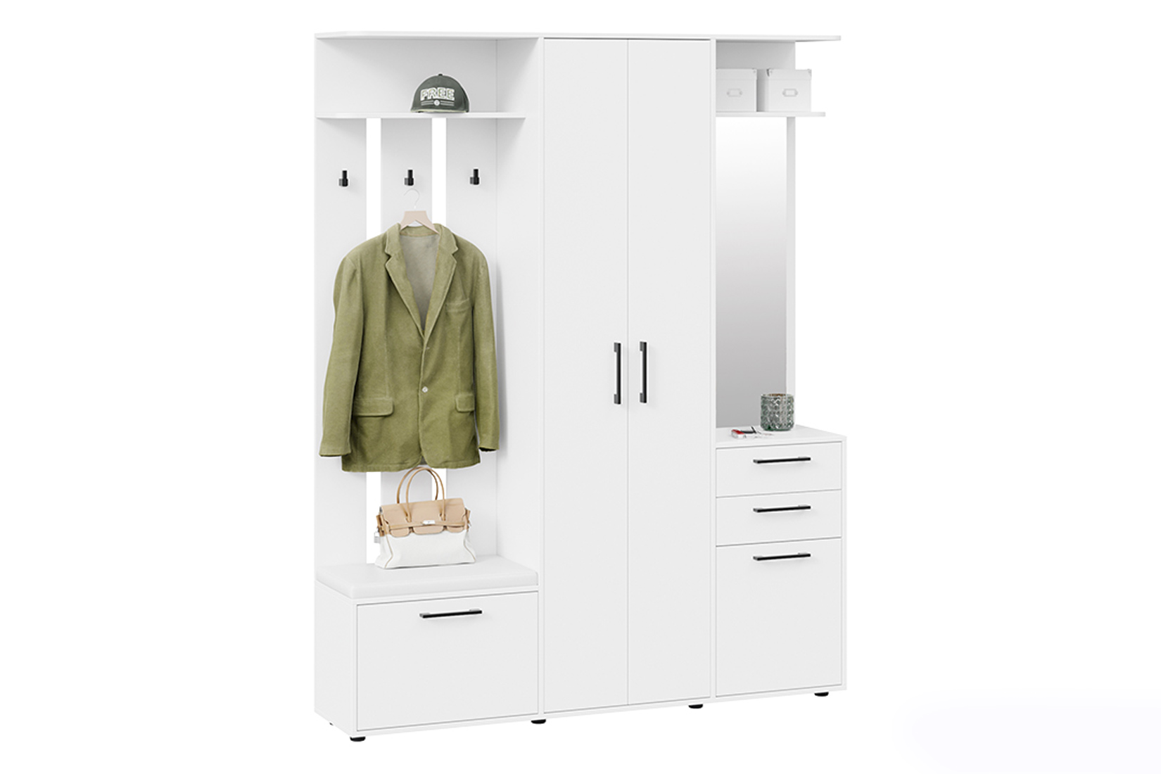 Набор мебели для прихожей «Витра» тип 2 – это идеальный вариант обустройства небольшой прихожей для тех, кто предпочитает максимальную функциональность и эстетичность мебели. Благодаря компактности и продуманной конструкции, наша новинка займет минимальное пространство в комнате, обеспечив при этом удобство и комфорт.Дизайн. Гармоничная комбинация светлых текстур с лицевой фурнитурой актуального цвета, способна стать ярким акцентом, задающим неповторимый тон не только мебели, но и всему пространству комнаты.Функциональность. При своей небольшой глубине прихожая «Витра» является функциональной мебелью, ведь в её конструкции предусмотрен не только закрытый шкаф с выдвижной штангой, но и открытая секция с крючками, выдвижные ящики и закрытые ниши, в которых можно спрятать от посторонних глаз все необходимые предметы. Место для сидения можно дополнить мягким элементом в обивке из экокожи, который преобразит общий образ моделиКаркас. ЛДСП 16ммФасад. ЛДСП 16мм Ручки: пластик, цвет «черный»Кромка ПВХ 0,4 ммНаправляющие: роликовыеПетля: без доводчиков (можно заменить на петли с доводчиком вкладные) Крючки: пластик, цвет «черный»Зеркало. (ШхВ) 978х376Тип сборки: универсальный