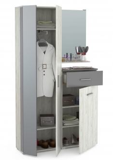 Стильная прихожая для малогабаритных квартир. Европейский дизайн подчеркивает выбор декоров холодной гаммы.