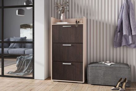 Обувница Дели 1 станет неотъемлемой частью уютной и достаточно приветливой прихожей. Столь компактное изделие позволит раз и навсегда забыть о проблеме разбросанной обуви по коридору. Обувница оснащена двумя откидными дверцами со специальными отсеками для аккуратного хранения обуви всей семьи. Открытая небольшая ниша пригодится для размещения обувной косметики и рожка для легкого надевания. Обувница Дели 1 изготовлена из высококачественных материалов и фурнитуры, что позволит гарнитуру служить вам долгие годы.