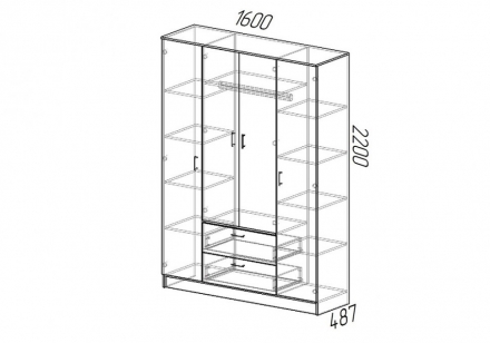 Хелен ШК 05 Шкаф 4х створчатый с ящиками белый