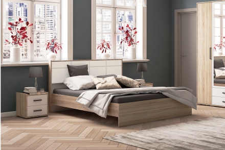 Беатрис КР1400 Кровать 140х200 с настилом ЛДСП Дуб сонома/Белый глянец