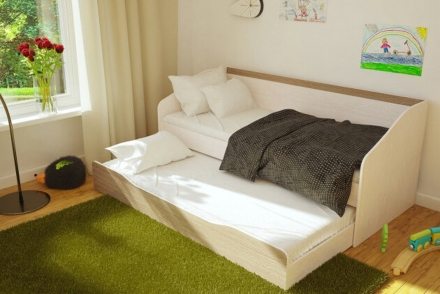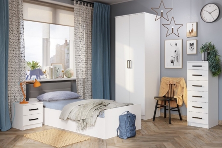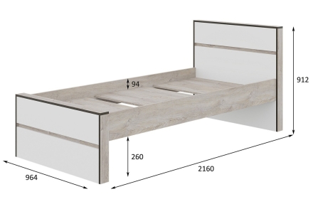 Бася КР 555 Кровать 90 с ЛДСП настилом Дуб крафт белый/Дуб крафт серый