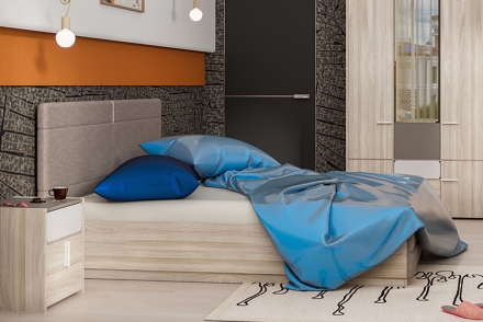 Оригинальная, модная кровать Элен понравится своей индивидуальностью: в ней сочетаются исполнения изголовья и изножья в ткани "Саванна Латте" и царги из ЛДСП.