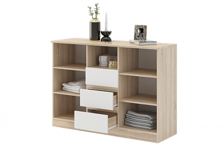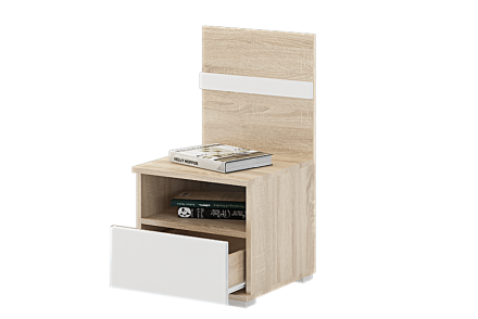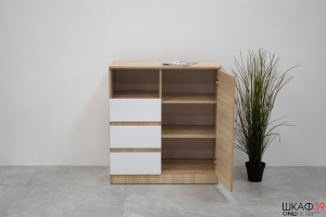 Производится из ЛДСП и МДФ. Отделан под натуральное дерево и белый глянец.