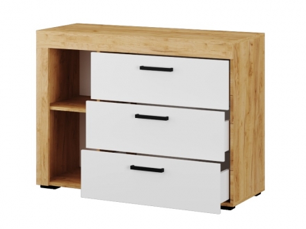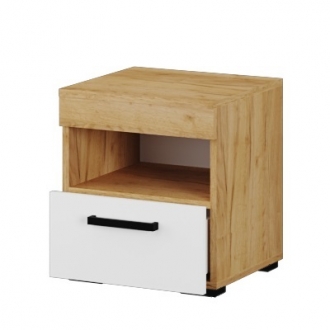 Коллекция мебели для спальни Адель разработана с учетом современных тенденций в мире мебели и отличается экологичностью, безупречным качеством и актуальным декором. Корпус в цвете дуб крафт золотой гармонично сочетается с белыми фасадами, а черные ручки геометрической формы придают модулям стиля. Модульная система позволяет Вам собрать оптимальный комплект с учетом особенностей Вашей спальни и количества вещей, которые необходимо расположить. Например, комплект 1 состоит из комфортабельной кровати с основанием из ДСП, двух прикроватных тумб, комода с навесным зеркалом и шкафа для одежды.