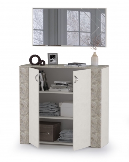 Фрезеровка на МДФ деталях и зеркалах подчеркивает форму ручек.