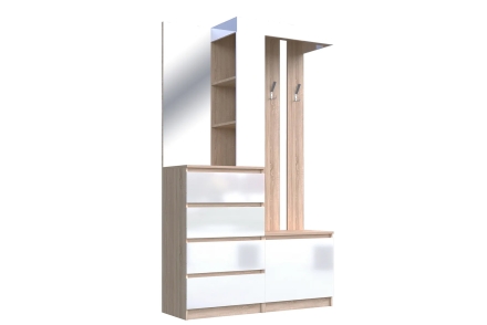 Челси Комод 8 ящиков Белый глянец/Дуб сонома