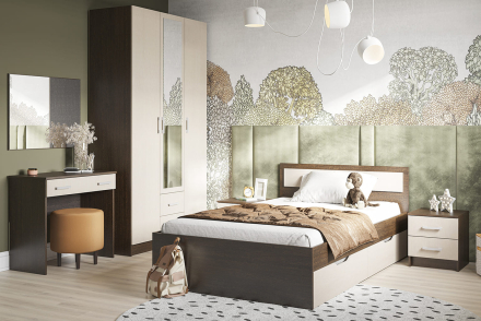 Удобная односпальная кровать с изголовьем. Максимальная нагрузка на одно спальное место - 100кг. Основание - планки ДВП шириной 140 мм Стильный и современный дизайн. Надежная фурнитура. Матрас в стоимость кровати не входит.