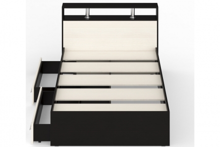 В основании кровати расположены два вместительных ящика для хранения постельных принадлежностей и личных вещей.