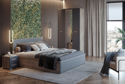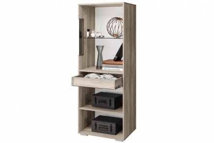 Всеми любимая модульная коллекция Наоми теперь в новом модном исполнении - дуб каньон и графит нубук. Приятный корпус под дерево и матовые темные фасады - такое контрастное сочетание сделает интерьер Вашей гостиной теплым и добавит комнате стиля. Всего нескольких модулей достаточно, чтобы обыграть пространство и сделать гостиную функциональной. Длинная полка позволит создать ТВ-зону, шкафы с комбинированными дверцами идеально подойдут для хранения сервиза и предметов декора. Особенности:трендовый дизайн,матовые фасады со стеклом,ручки с декором под дубовый спил.