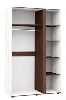 Особенности: трендовый стиль лофт, контрастный декор с текстурой натурального дерева, отсутствие наружной фурнитуры, функциональность модулей, универсальное наполнение у шкафов.