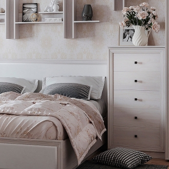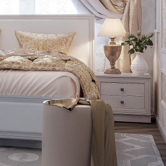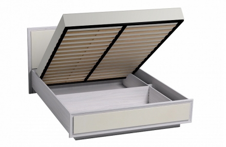 - Мягкое изголовье в экокоже белого цвета обрамлено рельефным профилем МДФ.