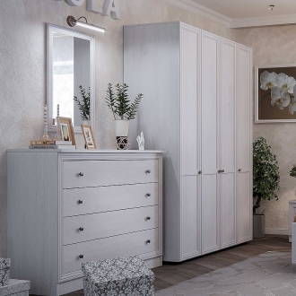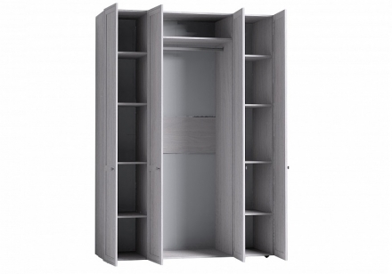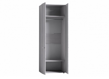 - 555 Шкаф для одежды и белья. В центральном отделении - стационарная штанга, которая выдерживает нагрузку до 40 кг. В боковых отделениях –полки регулируются по высоте. Фасады с импостом обрамлены профилем МДФ. Регулируемые опоры.