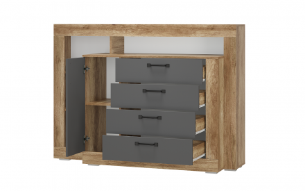 Коллекция Прима в модном декоре дуб каньон/графит удачно вписывается в городской индустриальный стиль и выглядит очень необычно и оригинально. Приятный корпус под дерево и матовые тёмные фасады - такое контрастное сочетание добавит комнате стиля.