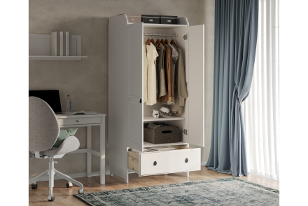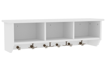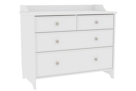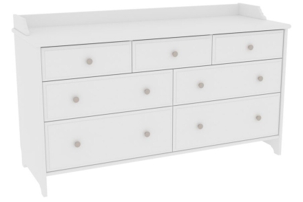Простой и современный стиль, сочетающий в себе эстетику, удобство и функциональность. Крышка комода имеет ограждение в виде задней и боковых планок с фигурным вырезом торцов. Изготовлен из массива хвойных пород. Мебель крепится к стене.