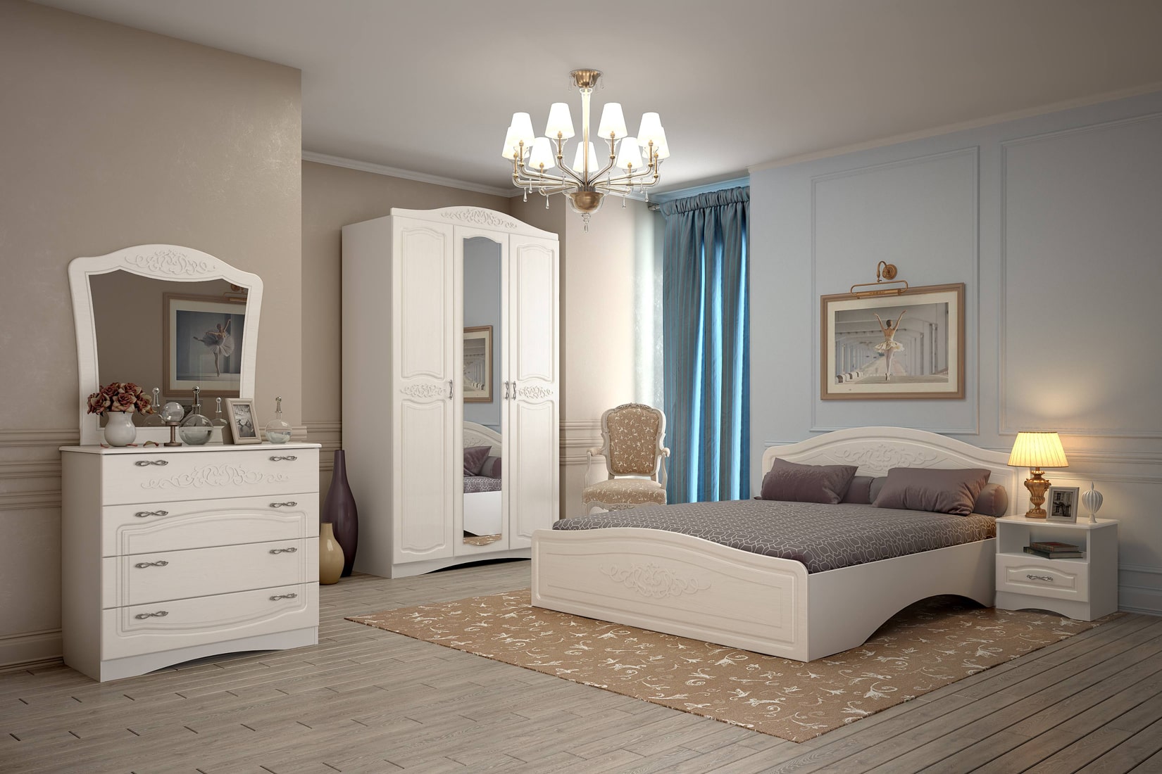 Спальный гарнитур Виола-2 в классическом стиле выполнен в почти белом цвете - Ясень жемчужный. Изысканный, хорошо продуманный дизайн обеспечит удобство и комфорт. Такая мебель дает возможность почувствовать атмосферу спокойствия и умиротворения. Спальня Виола 2 поможет со вкусом обустроить уютную комнату, в которой вы сможете отдохнуть не только телом, но и душой. Удобная кровать позволит выспаться и набраться сил после насыщенных дней. Прикроватная тумба позволит держать все важные и необходимые предметы около кровати. Вместительный выдвижной ящик и открытая ниша пригодятся для хранения книги для чтения перед сном, маски для беззаботного сна и крема для увлажнения рук. За центральными распашными дверьми 4-х дверного шкафа находится широкая штанга для вешалок-плечиков с безупречно выглаженной одеждой. Полки, скрытые за боковыми дверьми, и два вместительных выдвижных ящика созданы для бережного хранения сложенной одежды, белья, различных аксессуаров, обуви и коробок с важными вещами. Комод с зеркалом создают укромное место для наведения красоты и размещения всей необходимой косметики.